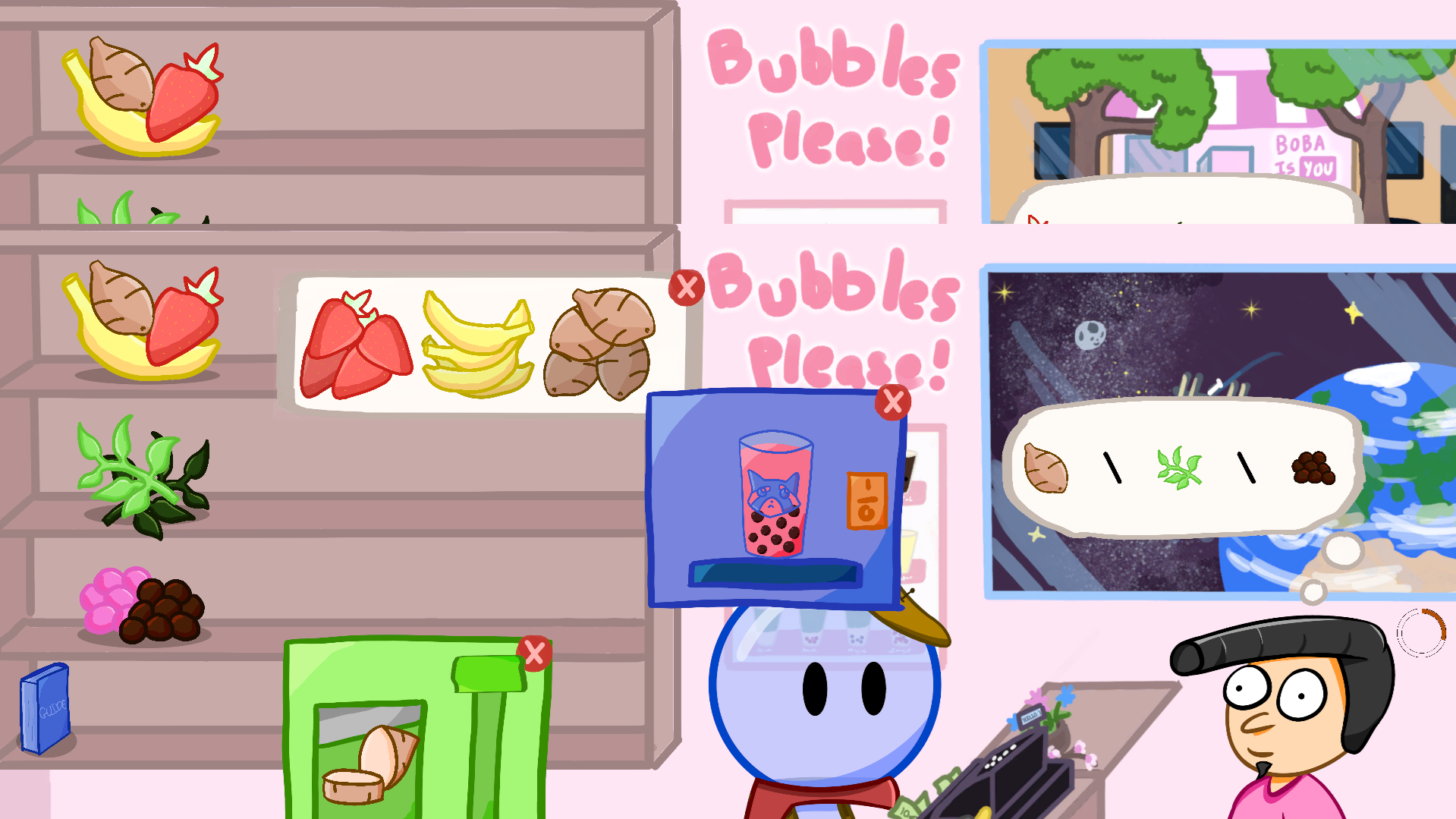 Bubbles, Please ! is a Unity 2D game inspired by the likes of Papers, Please ! where the player has to manage a bubble tea shop. Mix, cut, meld and transform your ingredients in delicious bubble teas for your diverse clientele !